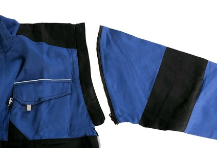 Pánská montérková blůza, odepínací rukávy s pružnou manžetou, kryté zapínání na zip a suché zipy, náprsní kapsy s klopami, skrytá náprsní kapsa na zip, jednoduché boční kapsy, spodní část na bocích do gumy, reflexní doplňky. Doporučené použití: stavebnictví, lehký průmysl, logistika, skladová manipulace, autoservisy, údržba, montáže, zemědělství, zahrada, hobby