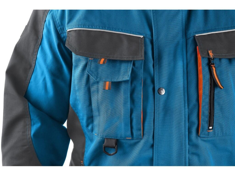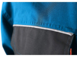 Pánská montérková blůza, ramena vyztužena 600D polyesterem, rukávy s nastavitelnou manžetou, kryté zapínání na zip a druky, multifunkční náprsní kapsy, boční kapsy na zip, regulovatelný pas, reflexní doplňky. Doporučené použití: stavebnictví, strojírenství, lehký průmysl, automobilový průmysl, logistika, skladová manipulace, spedice, autoservisy, údržba, montáže, zemědělství, zahrada, hobby.