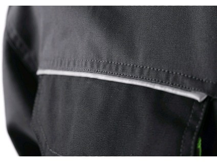 Pánská montérková blůza, ramena vyztužena 600D polyesterem, rukávy s nastavitelnou manžetou, kryté zapínání na zip a druky, multifunkční náprsní kapsy, boční kapsy na zip, regulovatelný pas, reflexní doplňky. Doporučené použití: stavebnictví, strojírenství, lehký průmysl, automobilový průmysl, logistika, skladová manipulace, spedice, autoservisy, údržba, montáže, zemědělství, zahrada, hobby.