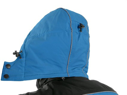 Pánská zateplená bunda, odolná proti vodě a větru, kryté zapínání na zip, odepínací kapuce, vnitřní manžety v rukávech, plastové poutko pod náprsní kapsou, stahování v dolním okraji, lepené švy, TPU membrána, reflexní doplňky. Náprsní kapsy na zip nebo druky, 2 boční kapsy na zip, 3 vnitřní kapsy.