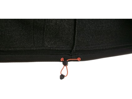 Pánská bunda z pleteniny, kombinace materiálů, kapuce napevno, doplňky v kontrastní oranžové barvě, stahování v dolním okraji, rukávy zakončeny gumičkou, reflexní doplňky, náprsní kapsa na zip, 2 spodní kapsy na zip.