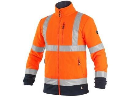 Pánská výstražná fleecová bunda s reflexními pruhy. Rukávy do gumy, boční i náprsní kapsy na zip, stahování v dolním okraji, podšívka ze síťoviny. Doporučené použití: stavebnictví, silničáři, řidiči, letecká a lodní doprava, logistika, řidiči kamionů
