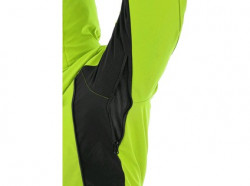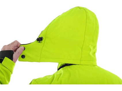 Pánská zateplená softshellová bunda, odolná proti vodě a větru, větrání v podpaží, odepínací kapuce, regulovatelná manžeta na rukávech a pružná manžeta v rukávech, stahování v dolním okraji, černé reflexní výpustky, TPU membrána, odolnost materiálu proti průniku vody 10 000 mm mimo oblast švů, paropropustnost 3 000 g/m2/24 h, podšívka je kombinací materiálů s fleecem, na levém spodním rukávu kapsička na zip, 2 spodní kapsy na zip, vnitřní kapsa.