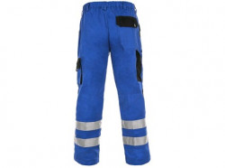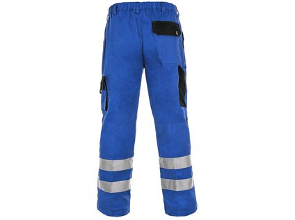 Pánské montérkové kalhoty, pas s poutky na opasek, vzadu do gumy, přední kapsy, boční kapsa na svinovací / skládací metr, boční kapsa na mobil / peněženku, zdvojená kolena, zadní kapsa s klopou, reflexní pruhy.