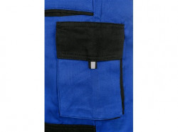 Pánské montérkové kalhoty, pas s poutky na opasek, vzadu do gumy, přední kapsy, boční kapsa na svinovací / skládací metr, boční kapsa na mobil / peněženku, zdvojená kolena, zadní kapsa s klopou, reflexní doplňky. Doporučené použití: stavebnictví, lehký průmysl, logistika, skladová manipulace, autoservisy, údržba, montáže, zemědělství, zahrada, hobby.