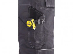 Pánské montérkové kalhoty, pas s poutky na opasek, vzadu do gumy, přední kapsy s poutky na nářadí, multifunkční kapsy na obou stranách, kolena zesílena 600D polyesterem s možností vložení kolenních výztuh, dvě zadní kapsy, jedna na suchý zip, reflexní doplňky. Doporučené použití: stavebnictví, strojírenství, lehký průmysl, automobilový průmysl, logistika, skladová manipulace, spedice, autoservisy, údržba, montáže, zemědělství, zahrada, hobby.