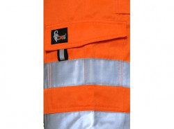 Pánské výstražné kraťasy, pas s poutky na opasek a gumou v bocích, 2 přední kapsy, 2 zadní kapsy s klopou na suchý zip, 2 boční kapsy s klopou na suchý zip, levá boční kapsa rozdělena na dvě komory, 3M reflexní pásky (šíře 5 cm a 6 cm). Doporučené použití: letní pracovní oděv, stavebnictví, silničáři, řidiči, údržba, logistika, letecká a lodní doprava, popeláři, záchranáři.