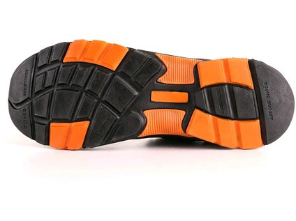 Bezpečnostní sandál s ocelovou špicí, reflexní doplňky. Materiál: svršek z 1,4 - 1,6 mm perforované hovězí broušené kůže kombinované s PU doplňky, podšívka z prodyšné oděru odolné textilie, podešev: gumová, olejivzdorná, antistatická, protiskluzová.