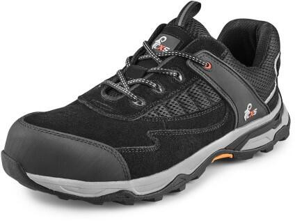 Bezpečnostní polobotka s ocelovou špicí, reflexní doplňky. Materiál: svršek z 1,4 - 1,6 mm hovězí broušené kůže kombinovaný s prodyšnou tkaninou a PU doplňky, podšívka z prodyšné oděru odolné textilie. Podešev: kombinace materiálu EVA, TPUa gumy, ole