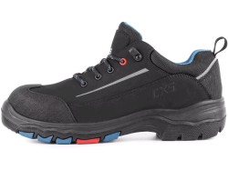 Bezpečnostní polobotka s kompozitní špicí a textilní antipenetrační stélkou, reflexní doplňky. Materiál: svršek z 1,8 - 2 mm hydrofobní hovězí lícové kůže, vnější TPU ochrana okopu odolná proti odírání dle SC (Scuff cap), ochrana paty ze strukturovan