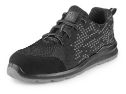 Textilní polobotka s ocelovou špicí a reflexními doplňky. Materiál: svršek z odolného 1,8 - 2,0 mm polyesteru pratelného do 30 °C, přední část zesílena mikrovláknem, 3-vrstvá prodyšná textilní podšívka, PU-PU, protiskluzová, olejivzdorná, antistatická podešev.