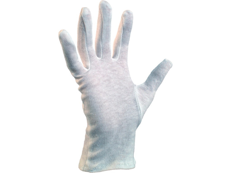 Textilní šité rukavice z běleného bavlněného úpletu, střih fourchette. Doporučené aplikace: manipulace s lehkým a drobným materiálem, zemědělství, automobilový průmysl, jemná montáž, číšníci, numismatici, pracovníci v muzeích, vhodné také pro práci vyžadující ochranu produktu před znečištěním.