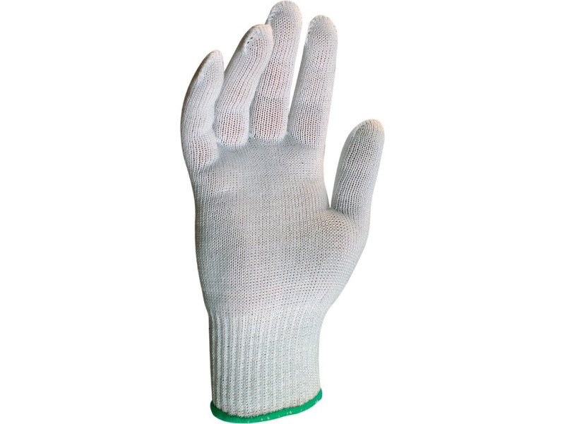 Textilní rukavice z běleného směsového úpletu, pružná manžeta. Doporučené aplikace: skladování, manipulace s