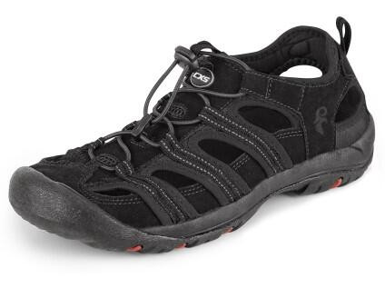 Volnočasový sandál s průduchy po stranách pro lepší odvětrávání, možnost stažení stahovací gumičkou, reflexní doplňky. Materiál: svršek z hovězinové kůže s textilními doplňky, textilní podšívka, podešev: phylon/guma.