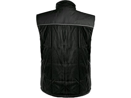 Pánská zateplená vesta, voděodolná s fleecovým límcem i podšívkou, reflexní výpustky, zapínání na zip, stahování v dolním okraji. Kapsy: dvě spodní kapsy zapínané na zip, náprsní kapsy: na pravé straně jedna velká kapsa zapínaná na patku se suchým zipem, na levé straně jedna kapsa na zip, druhá zavíraná na patku se suchým zipem a malým tunelem na tužku. Jedna vnitřní kapsa na pravé straně.