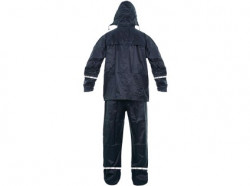 Nepromokavy odev do deste s kapuci v limci, nizsi hmotnost. Zapinani na zip, stahovani v dolnim okraji, vetrani na zadech a v podpazi, kalhoty v pase do gumy, lepene svy. Prakticke baleni na zip. Reflexni doplnky u modre a zelene varianty.