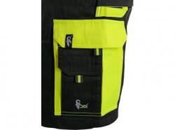 Pánské montérkové kalhoty zateplené flanelem, s náprsenkou, náprsní kapsa s klopou, pas s poutky na opasek, v zadní části guma s knoflíkem pro přizpůsobení velikosti, přední klínové kapsy, multifunkční kapsy na obou stranách, kolena zesílena materiálem 600D polyesterem s možností vložení kolenních výztuh, dvě zadní kapsy s klopami, šle s gumou vzadu, reflexní doplňky. Doporučené použití: stavebnictví, strojírenství, lehký průmysl, práce na silnici, odtahové služby, automobilový průmysl, logistika, skladová manipulace, spedice, autoservisy, údržba, montáže, zemědělství, zahrada, hobby.