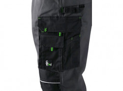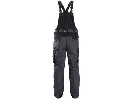 Pánské montérkové kalhoty s náprsenkou, náprsní kapsa s klopou, pas s poutky na opasek, v zadní části guma s knoflíkem pro přizpůsobení velikosti, přední klínové kapsy, multifunkční kapsy na obou stranách, kolena zesílena materiálem 600D polyester s možností vložení kolenních výztuh, dvě zadní kapsy s klopami, spodní část nohavic vyztužena materiálem 600D polyester, šle s gumou vzadu, reflexní doplňky. Doporučené použití: stavebnictví, strojírenství, lehký průmysl, automobilový průmysl, logistika, skladová manipulace, spedice, autoservisy, údržba, montáže, zemědělství, zahrada, hobby.