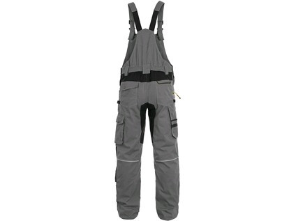 Pánské montérkové kalhoty s náprsenkou, strečová tkanina umožňující volný pohyb, náprsní kapsa s klopou, pas s poutky na opasek, přední kapsy s kapsou na zip, multifunkční kapsy na obou stranách, kolena zesílena 600D polyesterem s možností vložení kolenních výztuh, dvě zadní kapsy - jedna s klopou, zadní spodní lem nohavice vyztužen 600D polyesterem, šle s gumou vzadu, reflexní doplňky. Doporučené použití: strojírenství, stavebnictví, lehký průmysl, automobilový průmysl, logistika, skladová manipulace, spedice, autoservisy, údržba, montáže, zemědělství, zahrada, hobby.